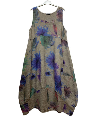 Colette Italian Made Linen Pansy Dress ~ Khaki