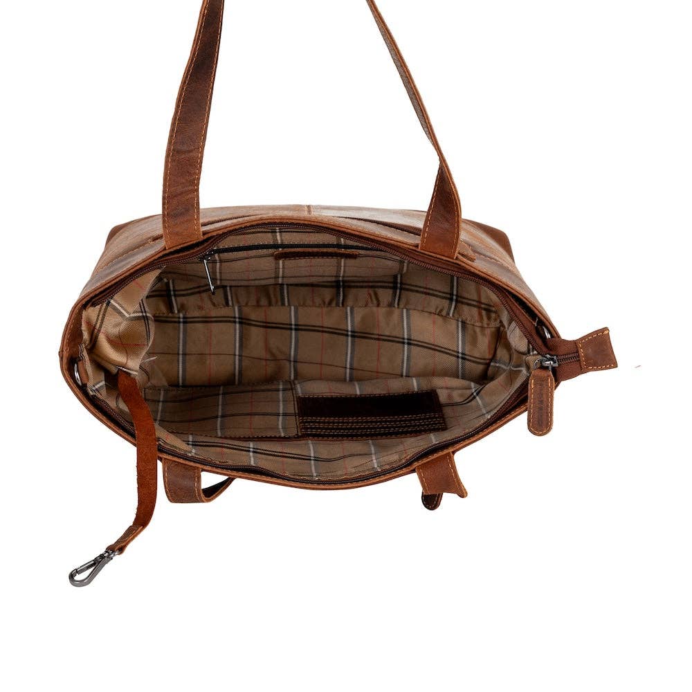 The Rowan Tote by Geenwood Leather is crafted for those who live authentically — wild at heart yet refined in style. Handmade from premium full-grain leather, it blends rugged durability with understated elegance, making it your perfect everyday companion from work to weekend. Key Features * 🐂 Full-Grain Leather: Naturally rich, supple, and built to age beautifully over time. * 👜 Dual Carry Design: Comfortable top handles plus detachable adjustable crossbody strap. * 💼 Functional Interior: Spacious main compartment with inner zipper pocket and slip sections for phone, keys, and wallet. * 🌿 Classic Lining: Soft checkered cotton twill interior adds structure and warmth. * ⚙️ Handcrafted Durability: Reinforced stitching, burnished edges, and antique-silver hardware. * ✈️ Everyday Versatility: From office to market to travel — fits seamlessly into your lifestyle. * 🎁 Premium Packaging: Includes a Wildera Leather dust bag for gifting or safe storage. Specifications * Dimensions: 35 cm