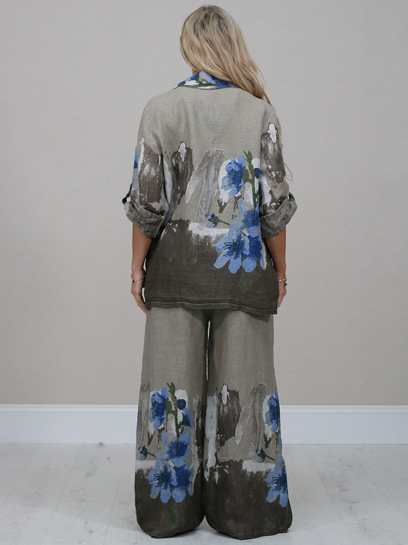 Italian Made Linen Jacket Blue Flower ~ Mocha